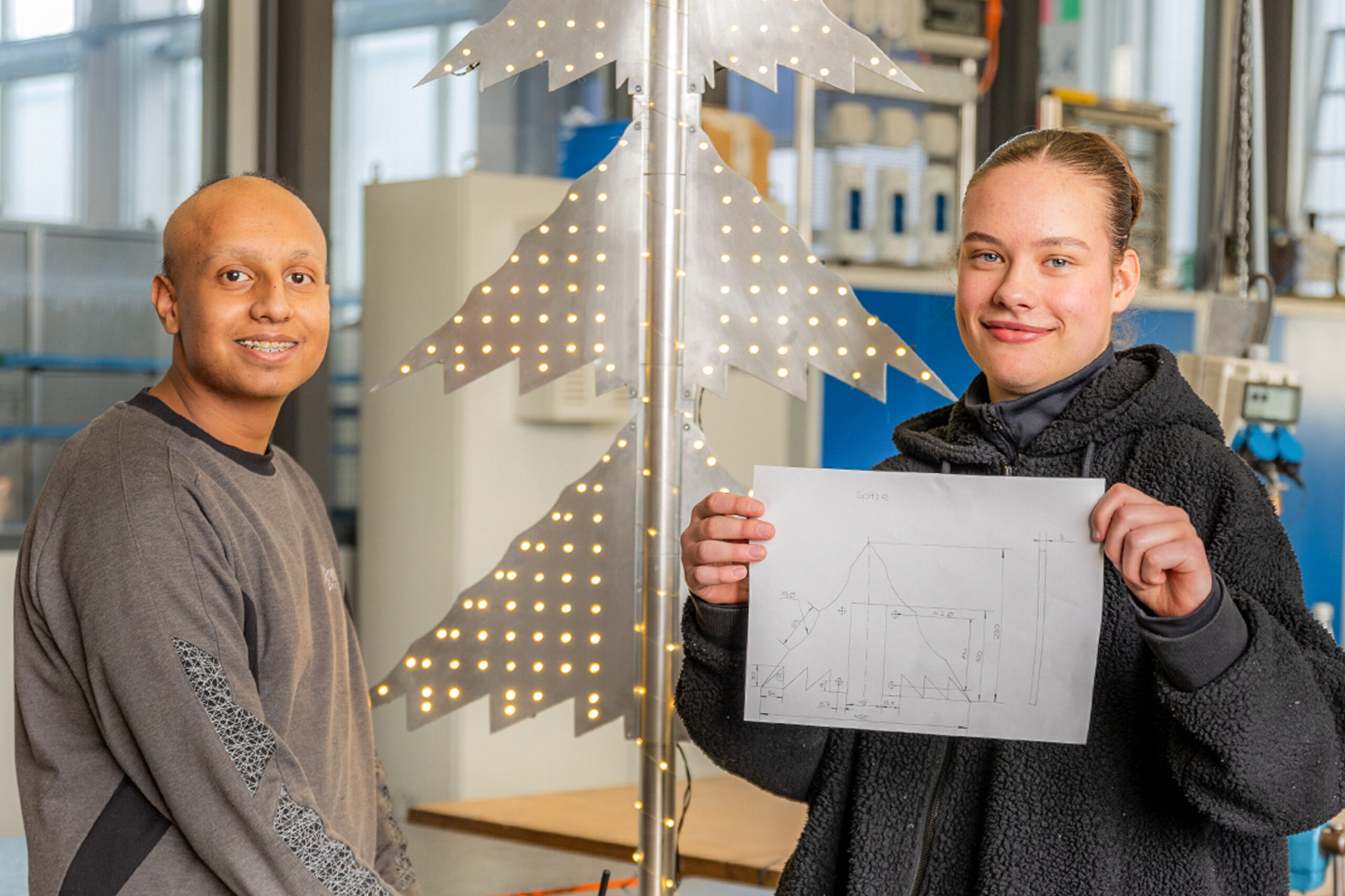 Mit viel Kreativität und Teamgeist haben einige unserer gewerblichen Auszubildenden aus den Berufen Industriemechaniker, Mechatroniker, Elektroniker und Technische Produktdesigner zusammengearbeitet und gemeinsam einen wunderschönen Weihnachtsbaum aus Metall gestaltet, der mit 240 funkelnden LEDs geschmückt ist!
